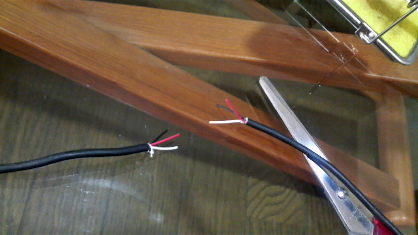 中身は2本のつもりだったので、予め通しておいた熱収縮チューブが細すぎて被せられない。ってか無理して被せると負担が掛かって切れたりケーブル同士が接触して動作しないっていうようなコトになってもアレなので計画変更。