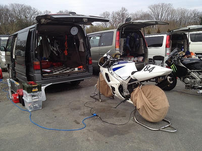 VFR400R(NC30)でたまにミニサーキット走行。C24セレナ(トランポ)と時々カメラのお話し。
