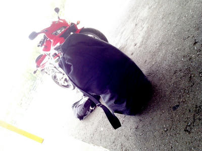 46さんがサーキットデビューするに当たってツナギは持って行くべきか着て行くべきか?という質問を受けたので、絶対持って行くべきだと伝えつつ、キャラバンを手に入れてから出番がなくなったダッフンダバッグがあるじゃないか!!