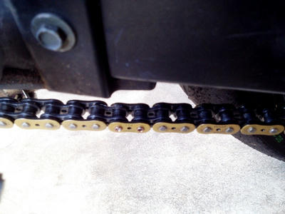 チェーンクリーナーと歯ブラシでせっせとチェーンについた砂を落とす。