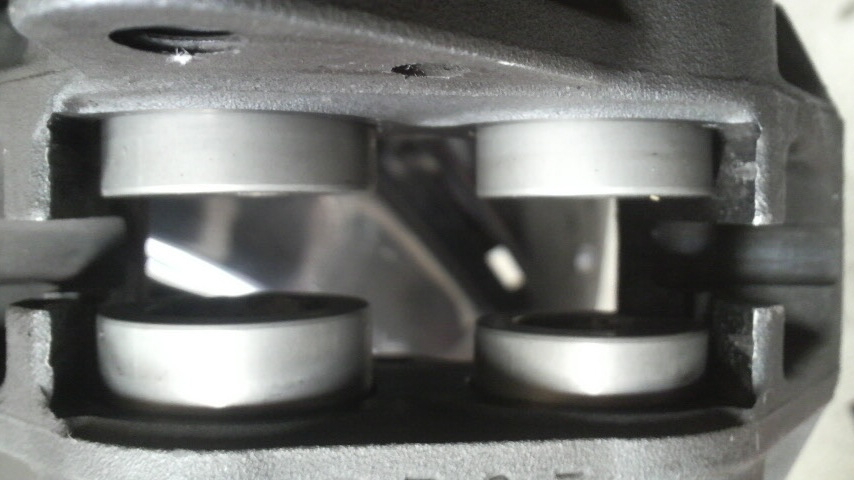 ピストン8個に薄く万遍なくグリスを塗って、押し戻したりポンピングしたりを繰り返して、ピストンの動きが良くなったらパッドの背中とペーパーで均したピンににもグリスを薄く塗って組み着ける。