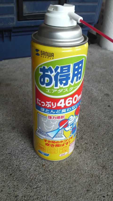 激安、且つパーツクリーナーを強制的に飛ばす程度の実力はあるものの、振りながら使うと窒素みたいなのが勢い良く出て来て凍ってしまうので注意が必要。