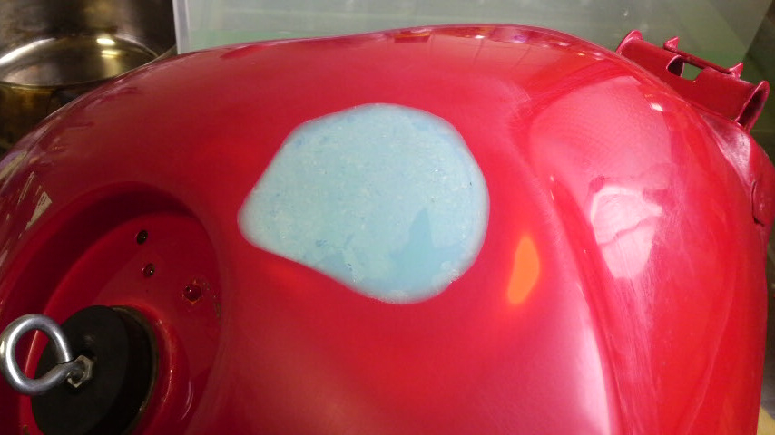 うすめ液を放置するのは普通のアクリル塗装の表面には危険な匂いがしますけども、とりあえず純正の塗装だし、そうじゃなくてもこれから塗装してしまうので気にしない方向で。