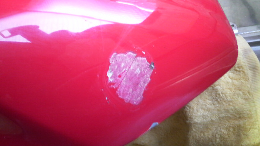 補修っつっても大きめの凹みが1カ所と小さいのが2カ所にパテを盛るっていうだけなんで、もうこの際今載ってるのよりはマシだからこのままでも良いかな…とか面倒臭がりな自分が語りかけて来る訳ですけど、コトのついでってコトでf(^_^;)
