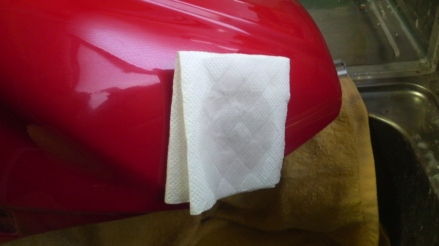 これもペイントうすめ液を染み込ませたキッチンペーパーを4〜5分くらい当てて放置して…