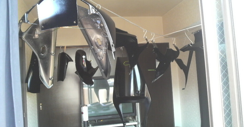 いや、どっちにしてもダメじゃねぇかって話しなんですけども、茂原の東コースで派手にハイサイドを喰らった結果、そこら中ボロボロになった訳ですよ。バイクも僕も。