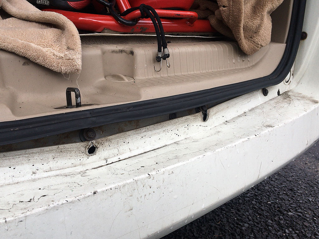 実際のセレナの被害はというと、バンパーを留めてる中心付近のプラリベットの辺りのが歪んでもげてる感じ。