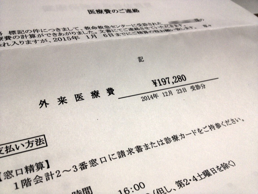 そんな訳で、一部の救急スタッフの対応に猛烈に腹が立つものの、それ以外の人達にはお世話になったことですし、この額なら納得して払えるなぁってことで、今日振り込んでおいた。