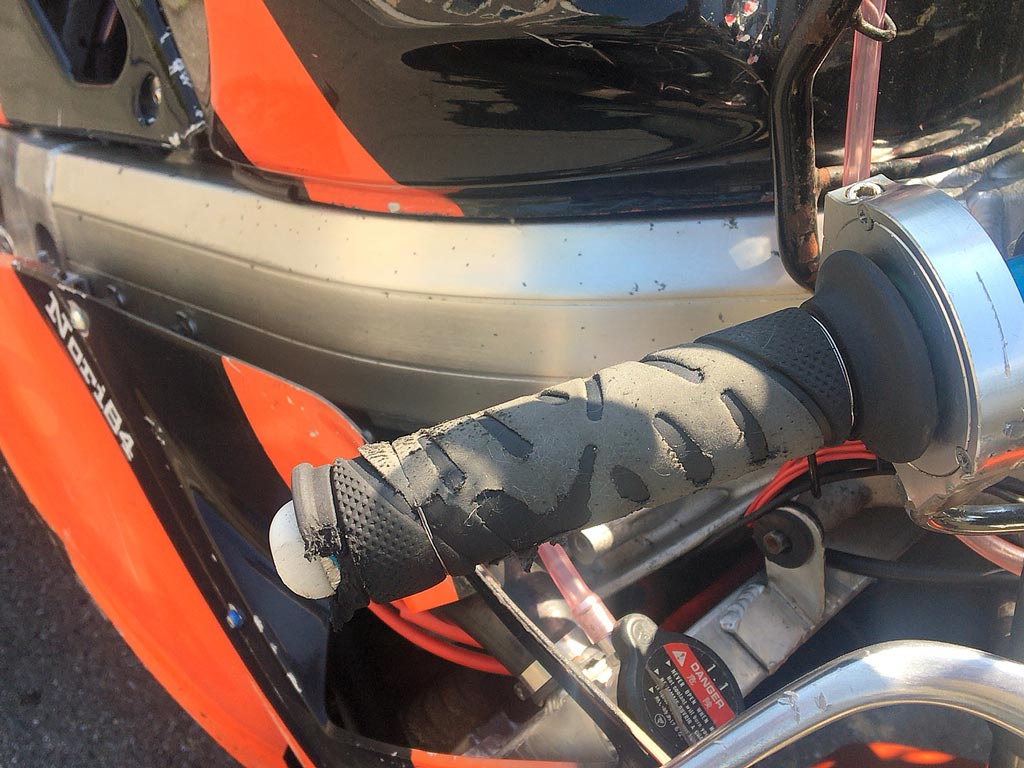 どちらも主にアクセルワークに関係することなんだけど、やる必要のあることは自分ではどうにもならないのでNメカさんに相談中で、それに伴ってもっとダイレクト感の高いグリップに交換したかった。
