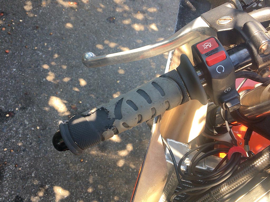 僕が今アルバイト生活で諸々予算が厳しいとは言っても、さすがにグリップが買えないほど貧困に喘いでいるという訳でもなし、交換しようと思えばいつでもできたんですけども、何しろこのグリップはアントライオンのハイスロと一緒にR1から移植した大事なお守りみたいなもんだったので、踏ん切りがつかないでいたんですよね。。
