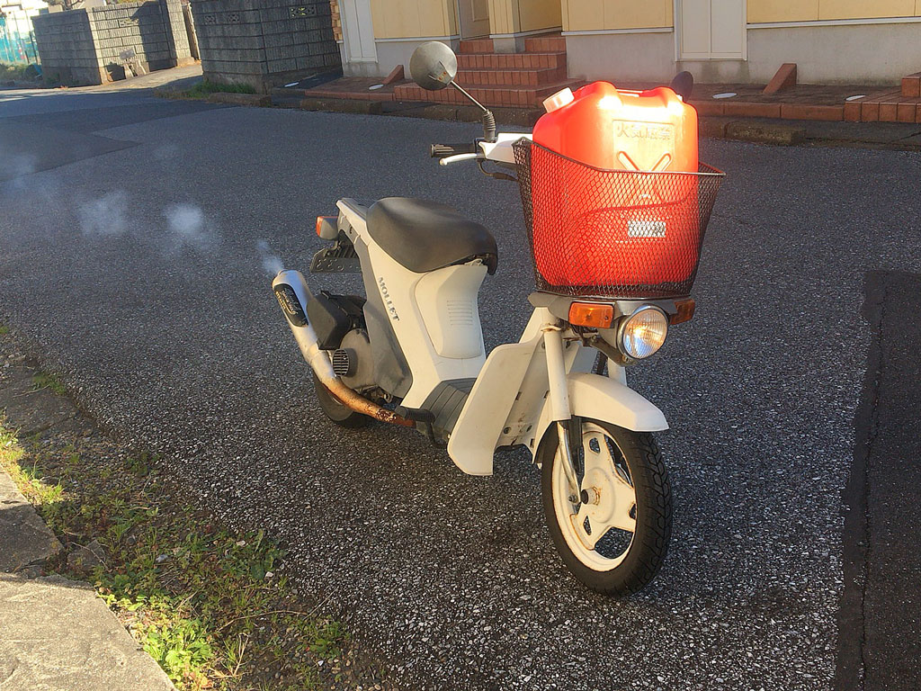 そして、18リッター給油したポリタンクをカゴに載せて走り出し、あまりのハンドルの重さと止まらなさに、買い出しにMolletで出掛けて、灯油をセレナで買いに行けば良かったんじゃないのかと、そんな風に思った次第です。