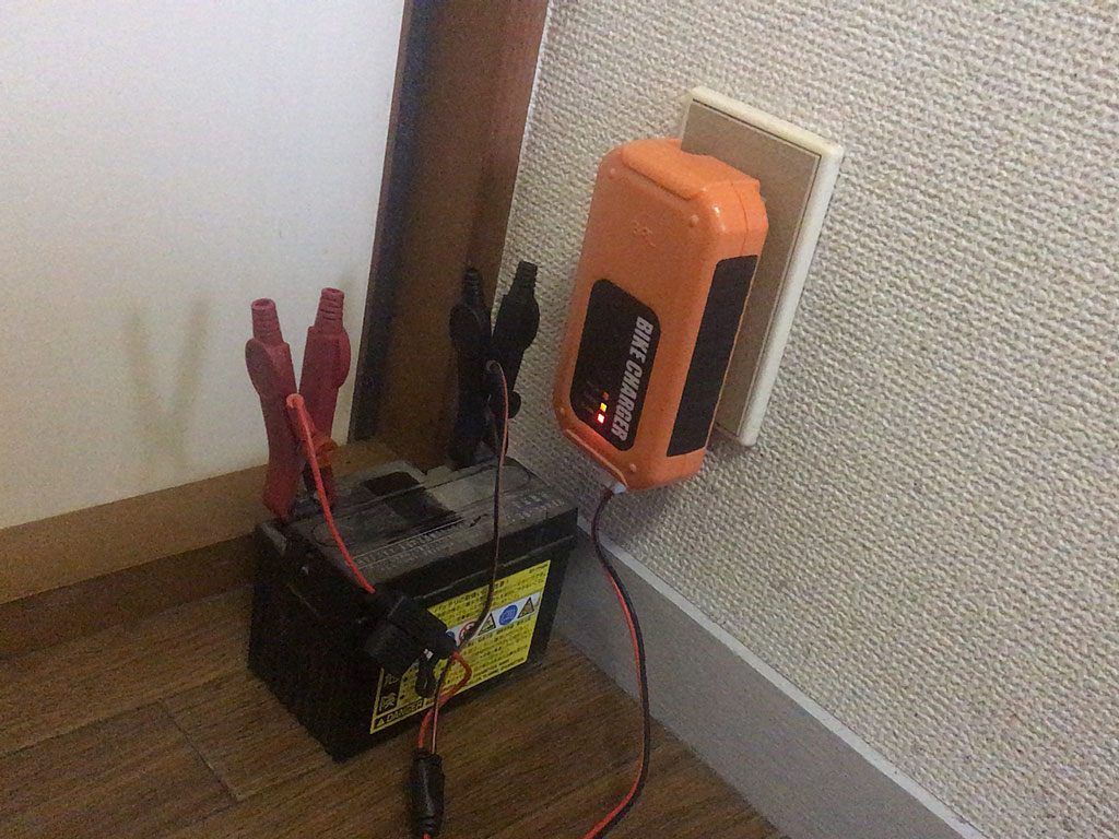 こんな時バッテリーチャージャーでも持ってたら1度充電してみて、セルでエンジンが掛かるかチェックできるんだけどな…近いうちにOKRに持ってって充電さしてもらうか…と考えていたのだけど、よく考えたら持ってるんだった!充電器!!