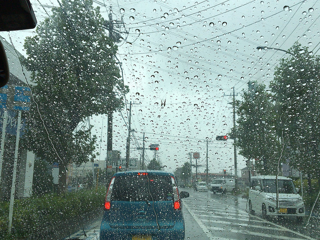 ちょっと写真だと判りづらいのだけど、車の屋根凹むんじゃないかと思う程の強い雨。