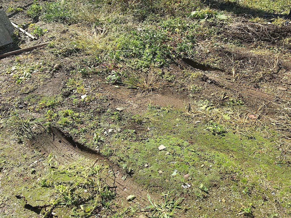 脱出した後で見てみたら、フロントタイヤの下はもちろんなんですけども、リアタイヤの下がこれ。