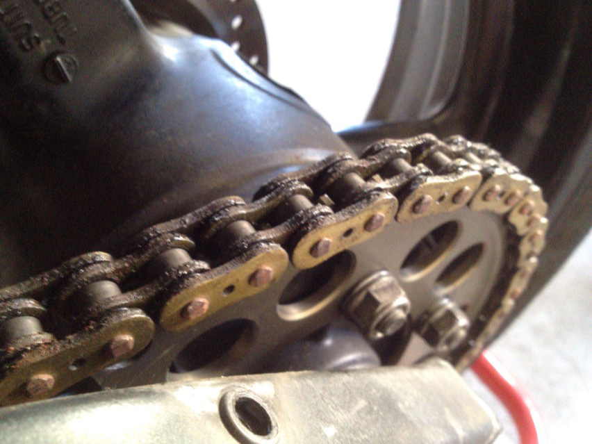 それからチェーンはちょっと前に清掃と注油をしといたので大丈夫かと思いきや、バッチリ屋根がついてるとはいえ屋外なので、まったく走ってなくてもシートの中で砂が付着して大変。