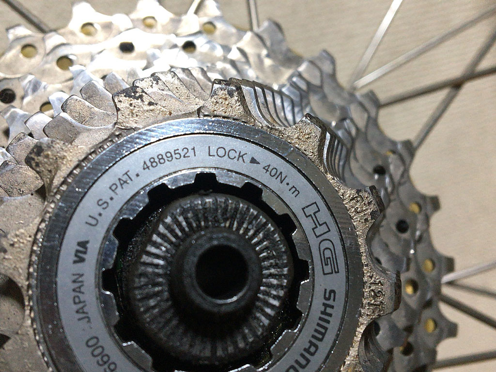 これはフリーハブのナットっつぅか、プレートっつぅか、そういうのだけ洒落でULTEGRAのを着けてくれたのか、カセットスプロケット自体がULTEGRAのものなのか…謎は深まるばかりf(^_^;)
