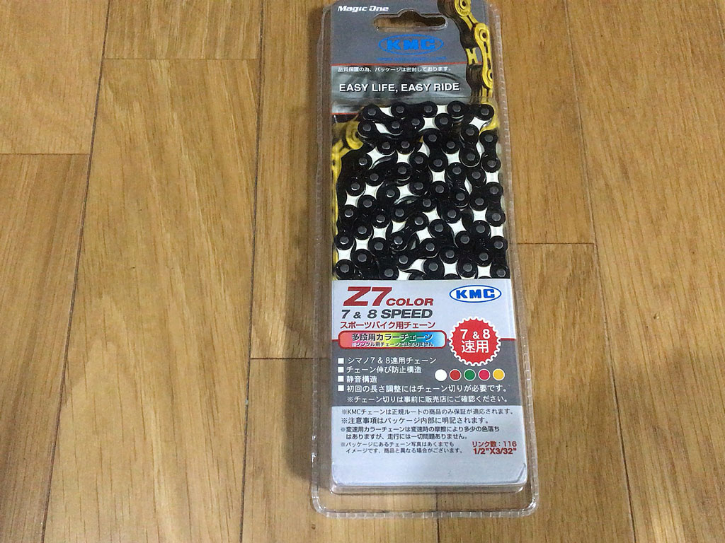 あにはしからもらってきたチャリンコは10年落ちのフラットロードで、グレードが何なのか良く判らないけど後ろは8枚のスプロケが着いてるのでシマノの7&8速用のチェーン。