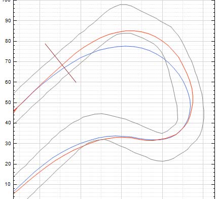 赤いラインが進入からガッツリ行ってるのに対して青いラインは徐々に開けて行ってる。