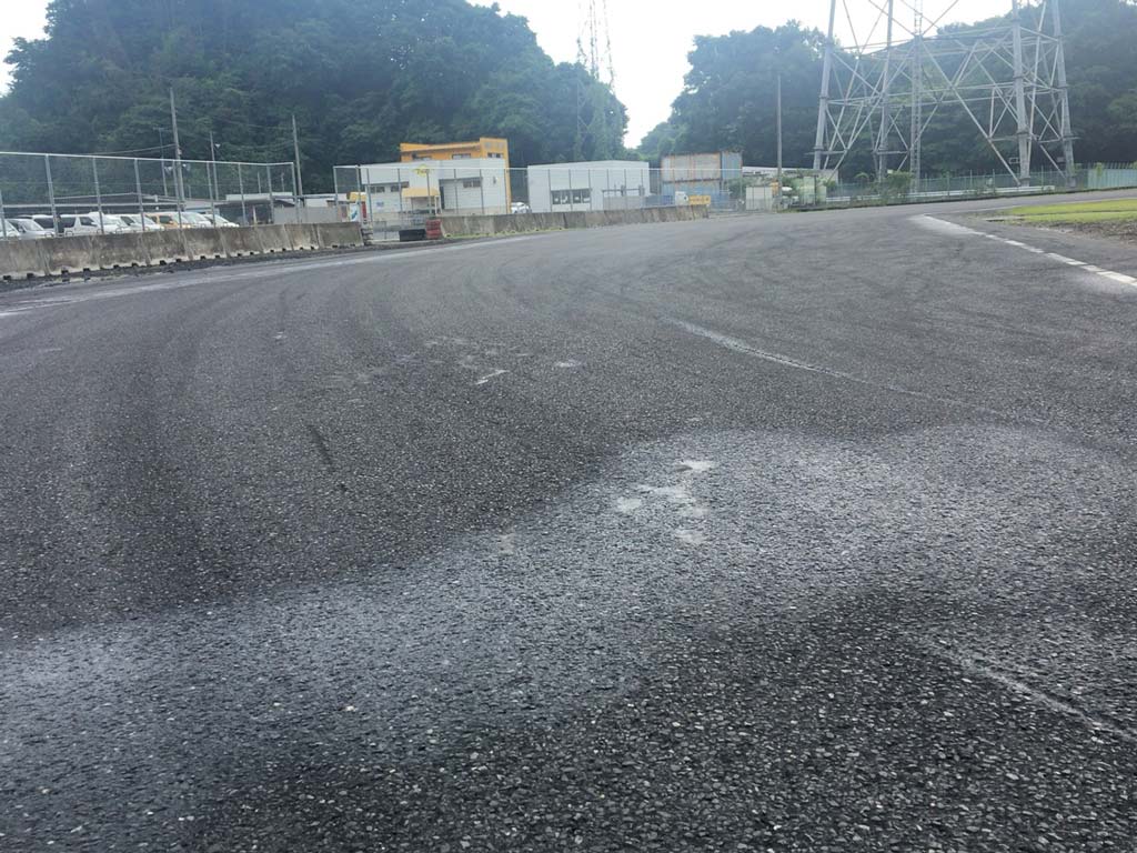 普段から気になっていたところを素手で触ってみたりすると、新しい路面古い路面、乾いているところまだ濡れているところ、濡れているように見えるけど乾いていてスニーカーでもガッツリグリップしているところやもう乾いているのに手がぬるぬるしてスニーカーでも滑ってしまうところなどなど、意外な発見があるので、走行開始前やお昼休みに実際に歩いてコースに触れてみるのは面白いですね♪