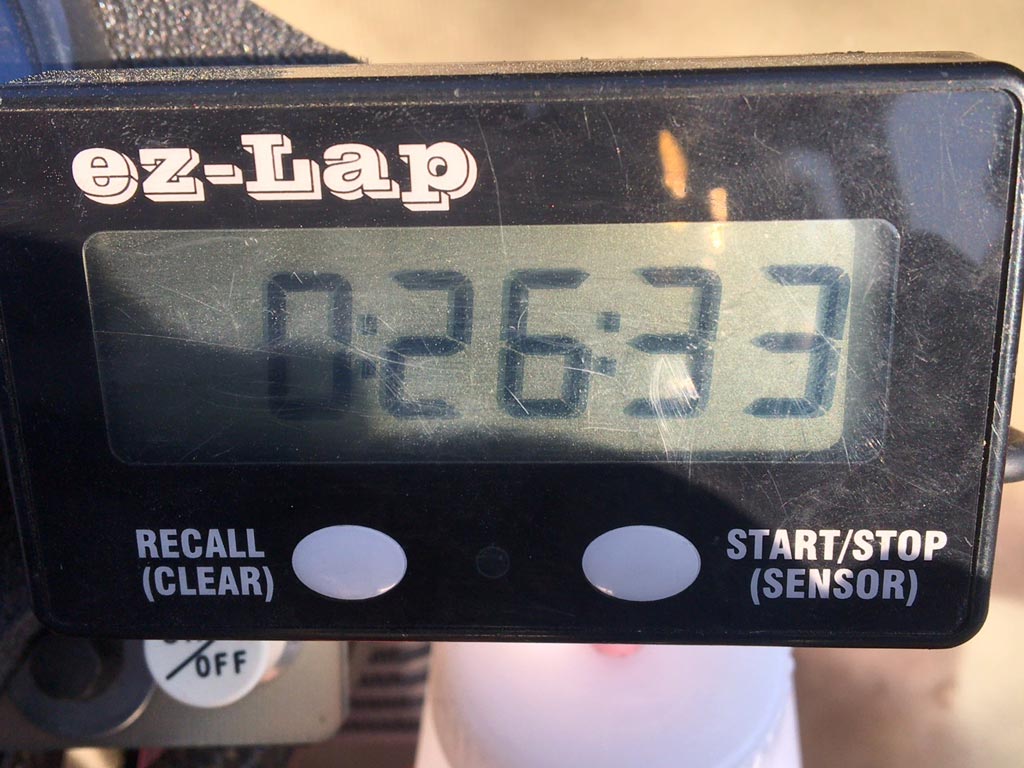 このくらいの時間になると撤収する人が多いのでクリアも取りやすくなって、今日ずっとビビリ散らかしていた1コーナー進入から奥の右へのアプローチがだいぶ再現できるようになって来たり、左コーナーのグズグズ感もなんとなく勘を取り戻して、なんとか26秒33まで戻った。