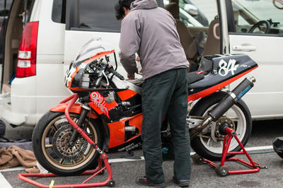 VFR400R(NC30)でたまにミニサーキット走行。C24セレナ(トランポ)と時々カメラのお話し。