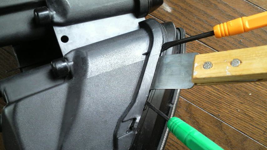 前に解体してみた時はひたすらにマイナスドライバーでこじってもぎ取ったんでボロボロになってしまったんですけども、コーキング剤のようなもので接着密閉されているっていうのが判っていれば対処のしようもあろうが、と。