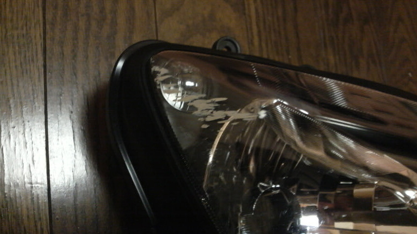 思惑通りほぼノーダメージでレンズを剥がすコトに成功して、後はレンズの再接着とちょっとした作業を残すのみというトコまで書いたんですけども、ヘッドライトユニットの溝に残っているコーキング剤をこそぎ取るのに使ったうすめ液と、それに溶かされたコーキング剤をなんとかしないといかんと思ってですね、ウエスをあてたマイナスドライバーでゴリゴリやったりしつつパーツクリーナーなんかも使ってたんですけどね。