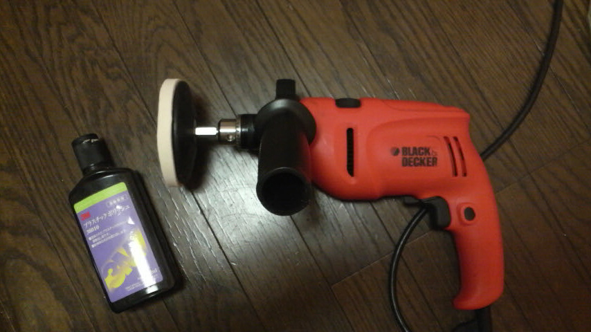 電ドルにフェルトのアタッチメントを着けて、レンズにコンパウンドを塗布してレッツゴー。