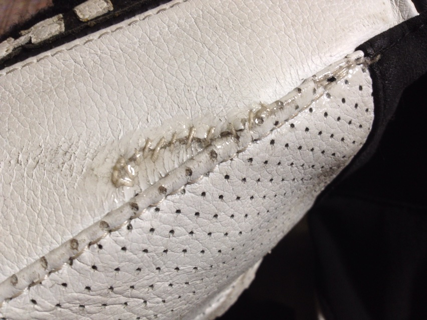 今日仕事から帰って昨日縫った後で木工用ボンドを塗りたくっておいたのを見てみたら、乾いて透明になっていた。
