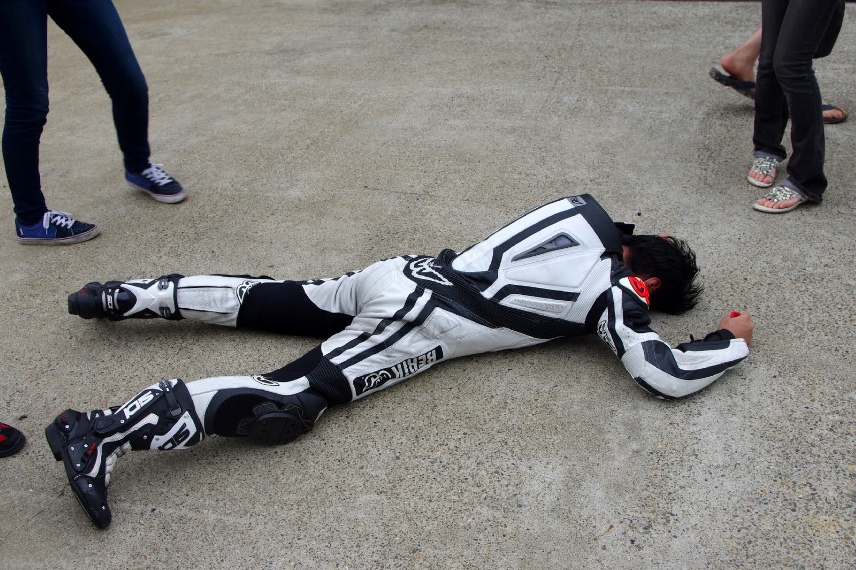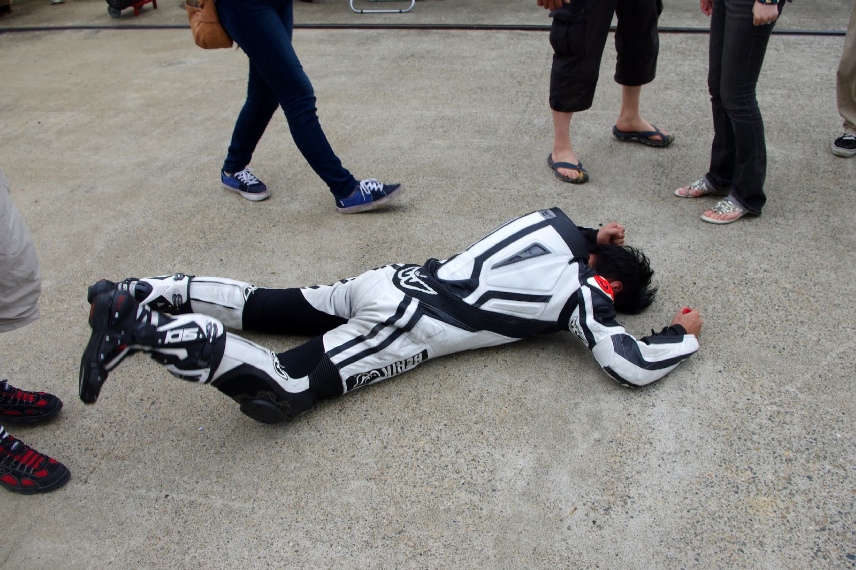 で、ライダーズブリーフィングの後でオフィシャルの人に、『マスターズの他に、各排気量毎に1番になると暫定表彰式というのに出れるのでしょうか?』と質問したところ、各排気量毎に上位1名ずつです!という答えをもらって、600ccクラスで予選1位を獲得出来た僕としては、俄然やる気増し増しで決勝に臨んだのです。