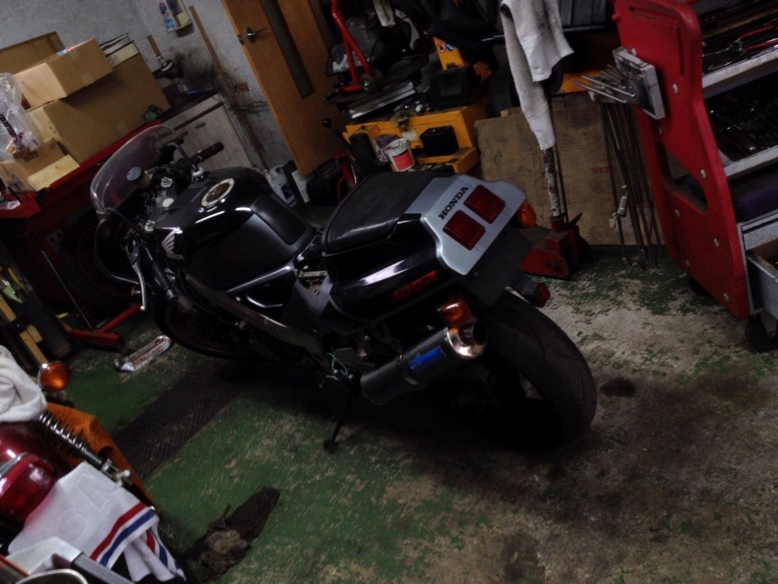 ちょっと思うトコがあって、いろいろ修行というか勉強をしたいと思ってですね、暫くR1でサーキットを走るのはお休みして中型クラスで練習し直そうと思っているんですけども、目下OKR社長が急がしい仕事の合間を縫って作ってくれているVFR400R、NC30。