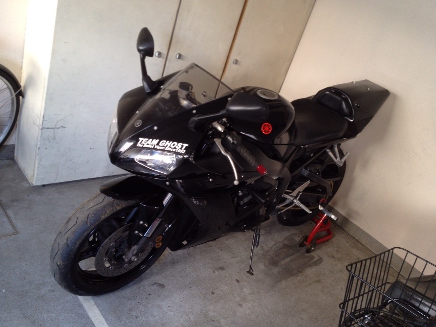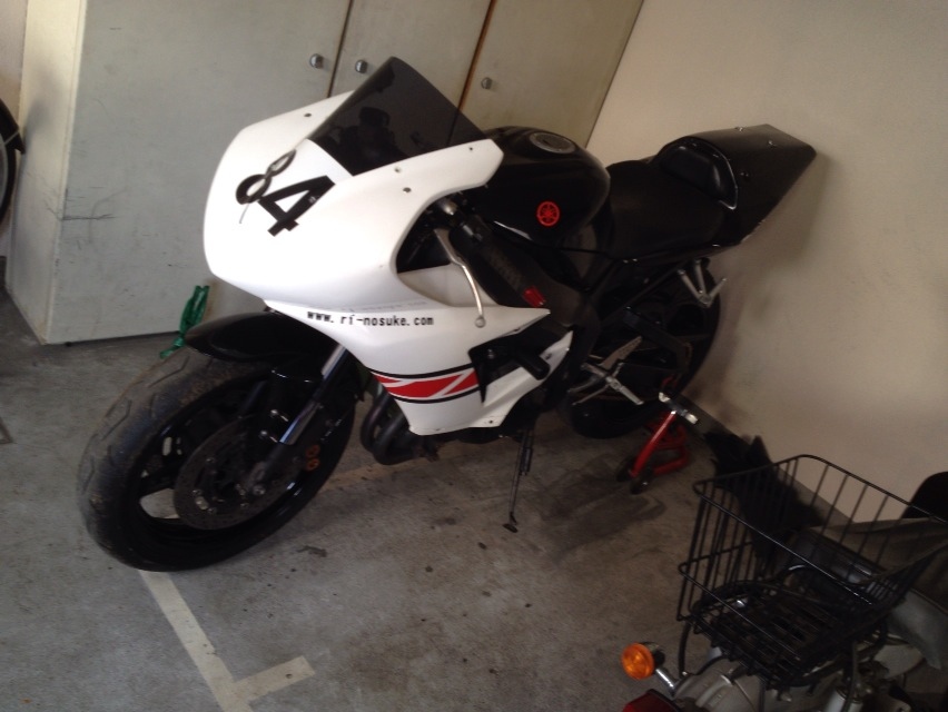 昨夜は雨が尋常じゃなかったのでトランポから降ろせず、今日の午前中に諸々用事を済ませて午後からお久しぶりの駐輪場にR1が帰還しました!