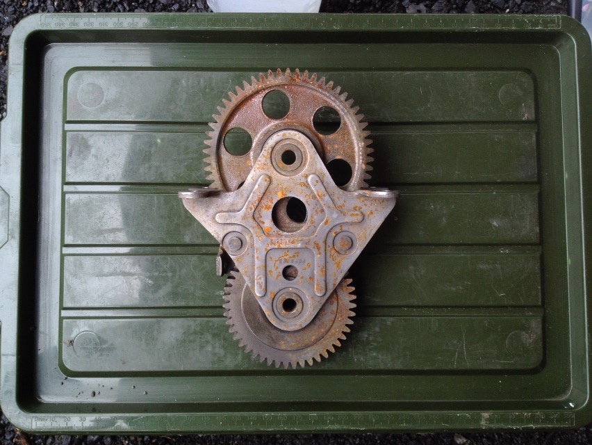 そんでコレが何者なのかを聞いたら2つの歯車がクランクシャフトとカムシャフトを回してて…って余計判んない…ネツデルワ