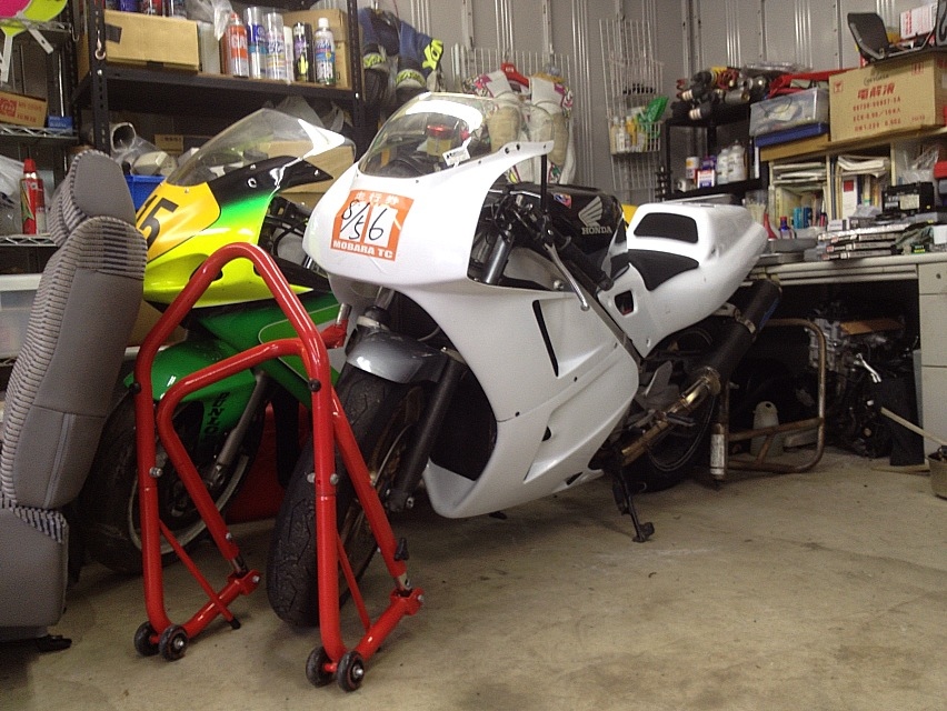 VFR400R(NC30)でたまにミニサーキット走行。C24セレナ(トランポ)と時々カメラのお話し。