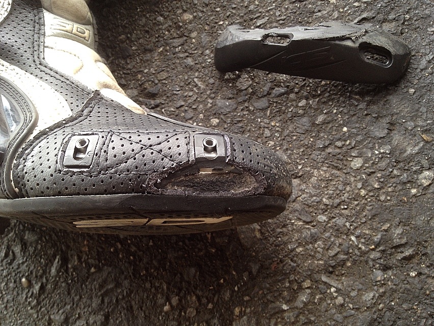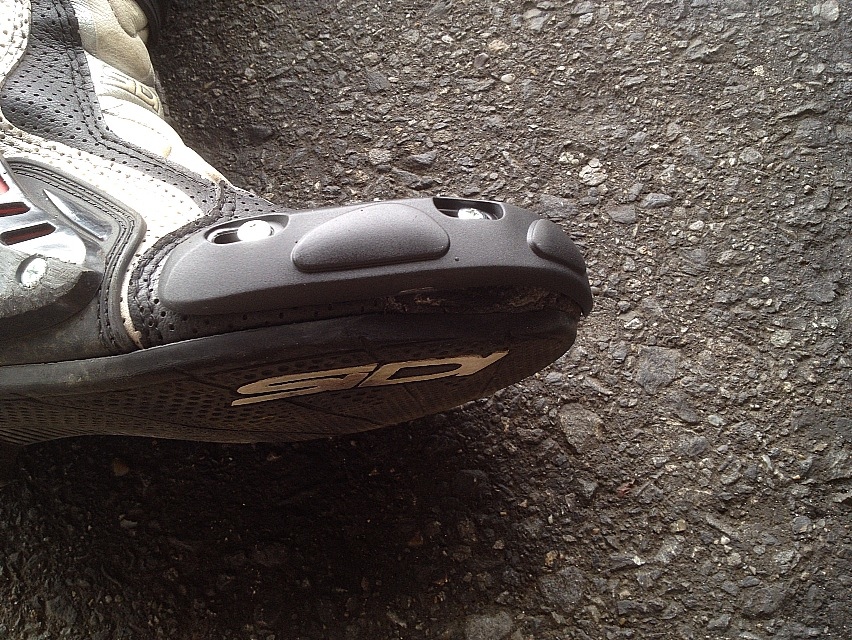 12日に筑波で練習した時に右のブーツの爪先が酷いコトになった訳ですけれども。