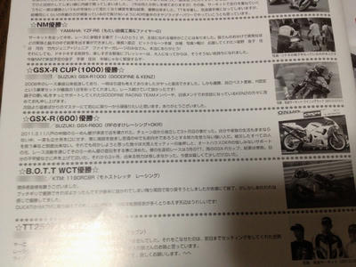 『先日の筑波TT NMクラス3位入賞の件…アレ後から考えてみたらウーソでーしたぁーーーーー!!!!』みたいな内容だったらどうしようと奥歯をカタカタ言わせながら開封してみましたらば、先週の筑波ツーリスト・トロフィー in Septemberのプラグラムが郵送されて来てた。
