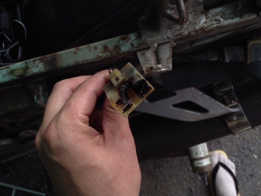 そのまま乗っていても、またすぐにバッテリーがあがり再びコネクターが溶けます。
