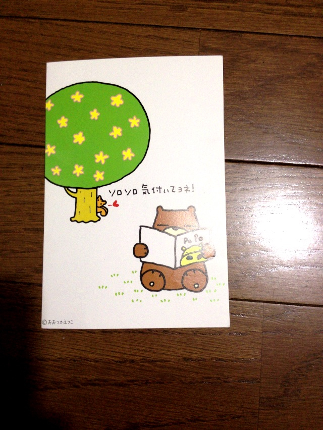 ふたつ折りの可愛らしいポストカードが出て来た!