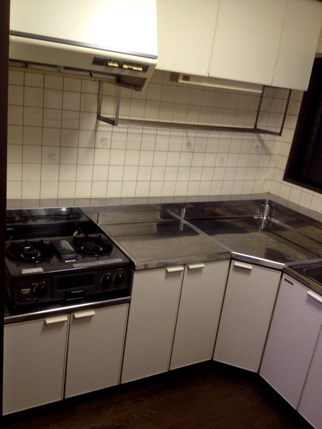 写真で見ると判り辛いのだけど、扉からレンジフードから壁のタイルから何から何までビッカビカ。