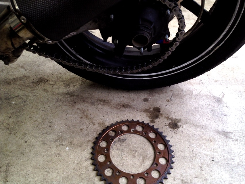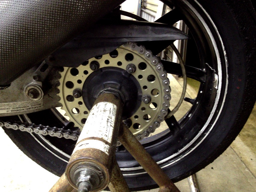 で、一昨日ガレージで車に積み込む前にリアのスプロケ交換をしたんですけども、改めて思うにNC30はタイヤ交換はこの上なく楽だけどスプロケ交換はやたら面倒だ。