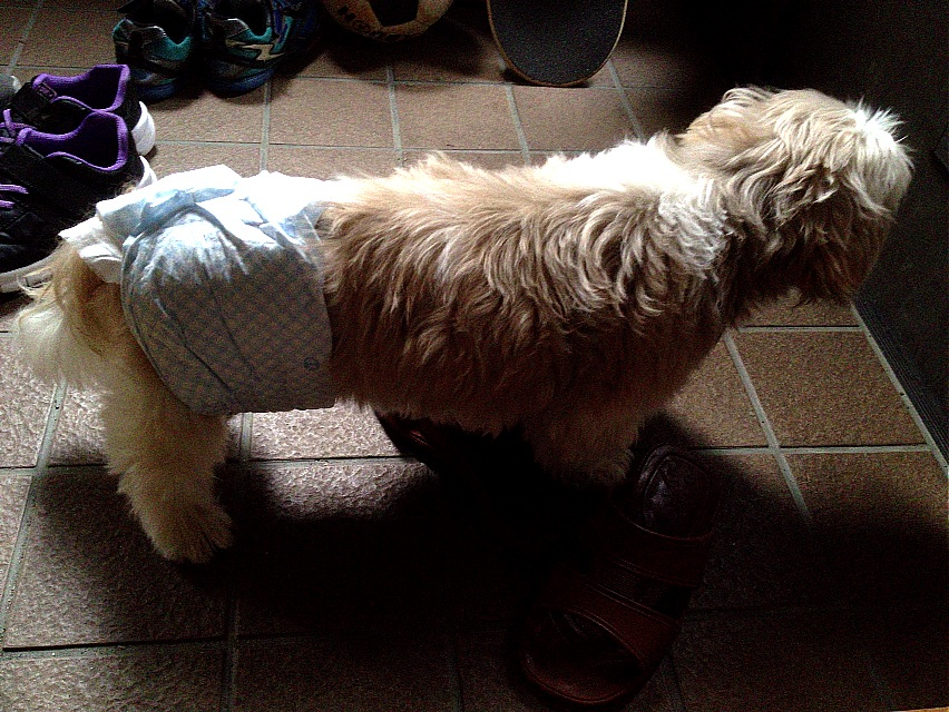 ザックさんはもうかなり高齢のシーズーなので、オムツくらいは仕方なし。