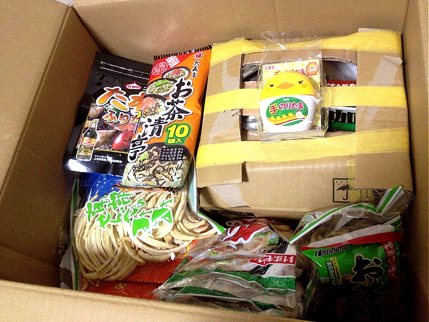 この写真の下にも袋ラーメンや本場せんべい汁キットなんかも入っていて大変なコトになっているのだけども…。