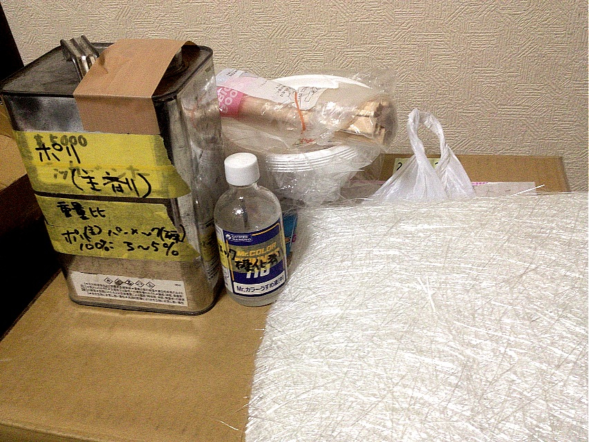 いや、グラスホッパーはラジコンなので違うけど、僕今までその辺で売ってる適当な補修セットで適当にやってたので、本格的なFRP補修初チャレンジです。こういうの大好きなので凄く嬉しい!!