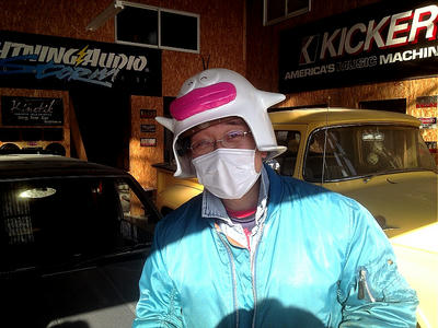 帰り際にmonkey wrench motorcycleの隣りのカーオーディオのプロショップ(?)が制作した素敵ヘルメットがあるってコトで見せてもらった。