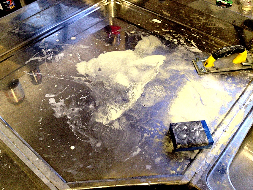 いやぁ…普段はペーパー掛けるのも風呂でやるんですけども、この日は転倒直後の怪我のせいでしゃがむのがしんどくて、立って作業しようと思ったらちょうど良いとこにちょうど良い水場が…みたいな(笑)
