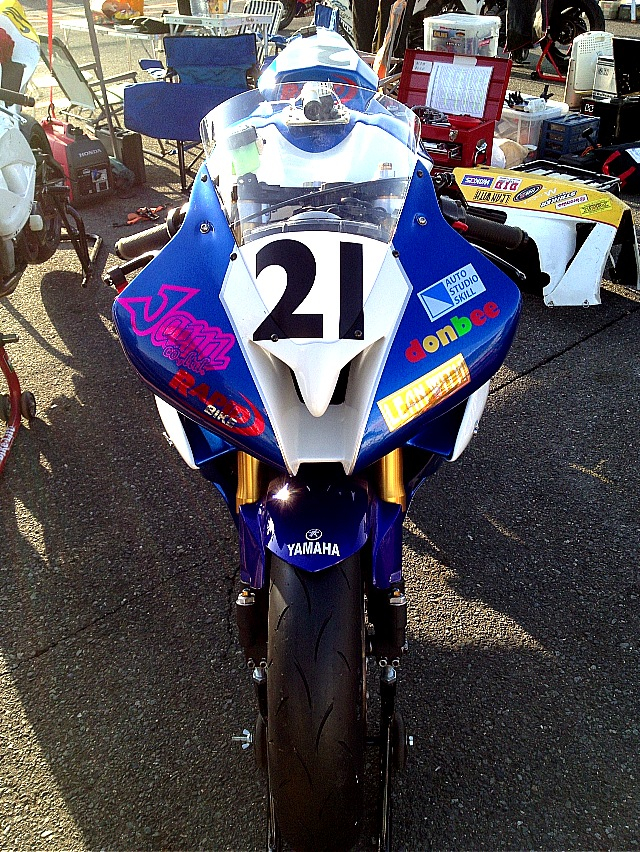 …っつっても僕は手伝うっていうよりも、むしろずっと邪魔をしてたっつぅか、akashitimiさんのR6に装備された謎のパーツの数々に『コレなんですか!?なんですかコレは!?』と質問攻めを浴びせたり、お手伝いそっちのけでST600の流れを勉強させてもらってたり、akashitimiさんのサスのセッティングの考え方を教わったり…って改めて考えてみるとホントに邪魔しに行っただけだf(^_^;)