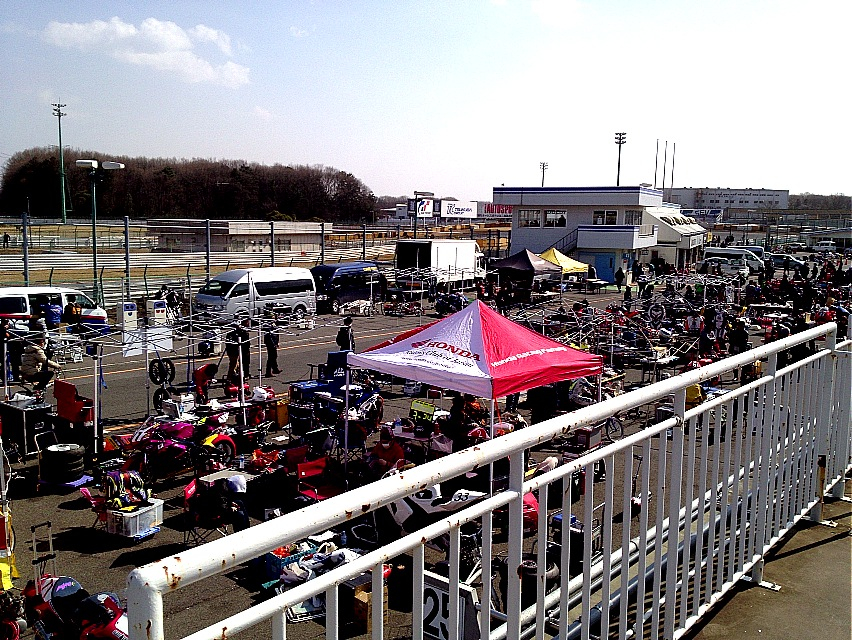 そんでですね、今日の筑波は早朝こそ昨日の雨が残ってたものの、明るくなる頃には雲も晴れて陽が差して来た…のですが、コレがまた気を抜くと真っすぐ立っていられないくらいの強風が吹き荒れていて、最終コーナー進入でアクセル抜いた瞬間に何処かにすっ飛ばされるんじゃないか??って勢いだった。