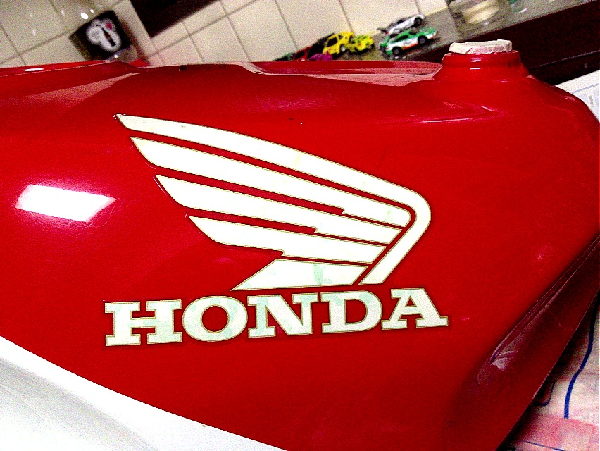 で、先週末にタンクの足つけをしようとしたら、Hondaのロゴが剥がれなくて後回しにしてたんですよね。