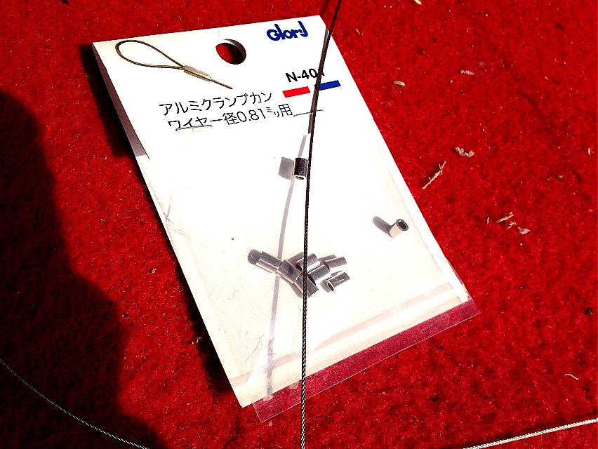 でも本体に穴をあけるのは構造が判らないので躊躇してたら、akashitimiさんがイカす方法でワイヤーを留めてたのでパクリます宣言してた(笑)