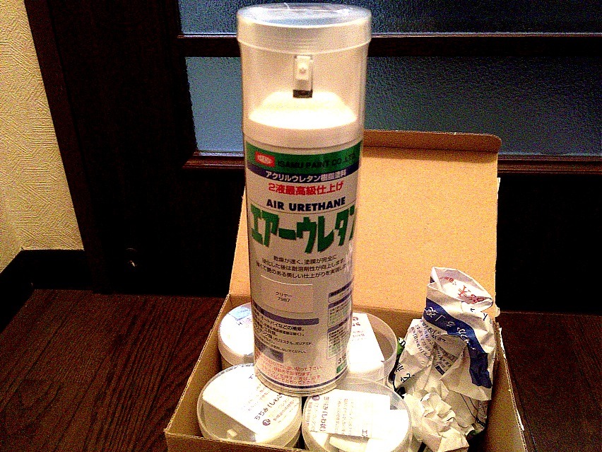 ウレタンクリアは高いのだけが難点なのだけど、ヤフオクだと1本1500円とかで出品してるお店があるので、5本仕入れときました。